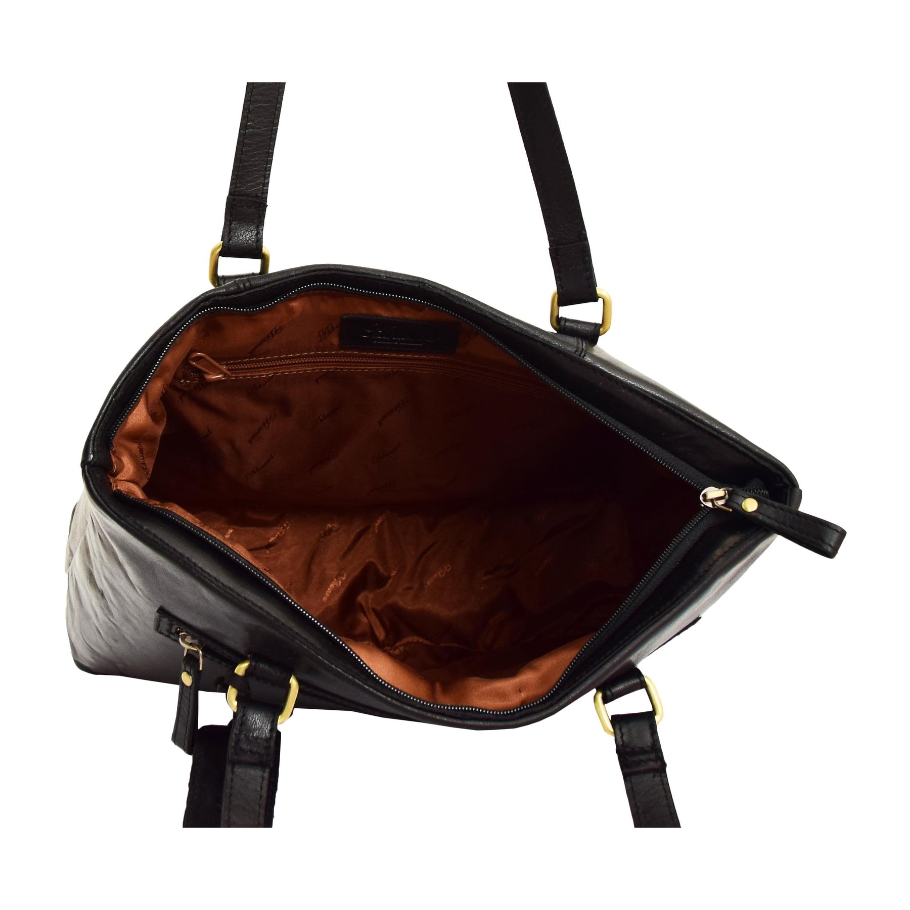 A functional elegantly designed leather tote bag made from supple cowhide leather with a gentle sheen. It features two shoulder handles with a 26 cm drop and two outer pockets. Inside there are slots for a mobile phone, purse and pens, also there is one zip pocket.