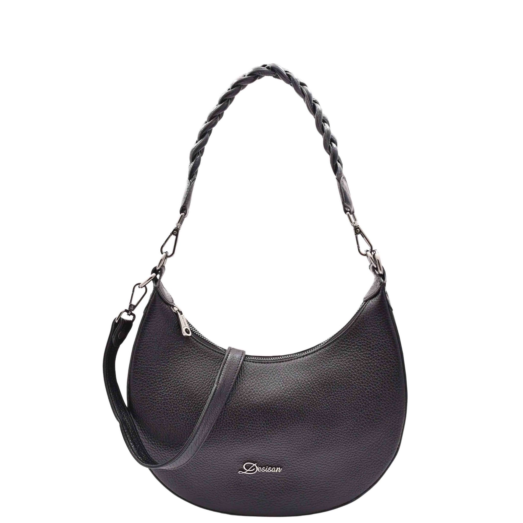 Womens Leather Twist Handle Strap Zip Cross Body Bag Sarah Black