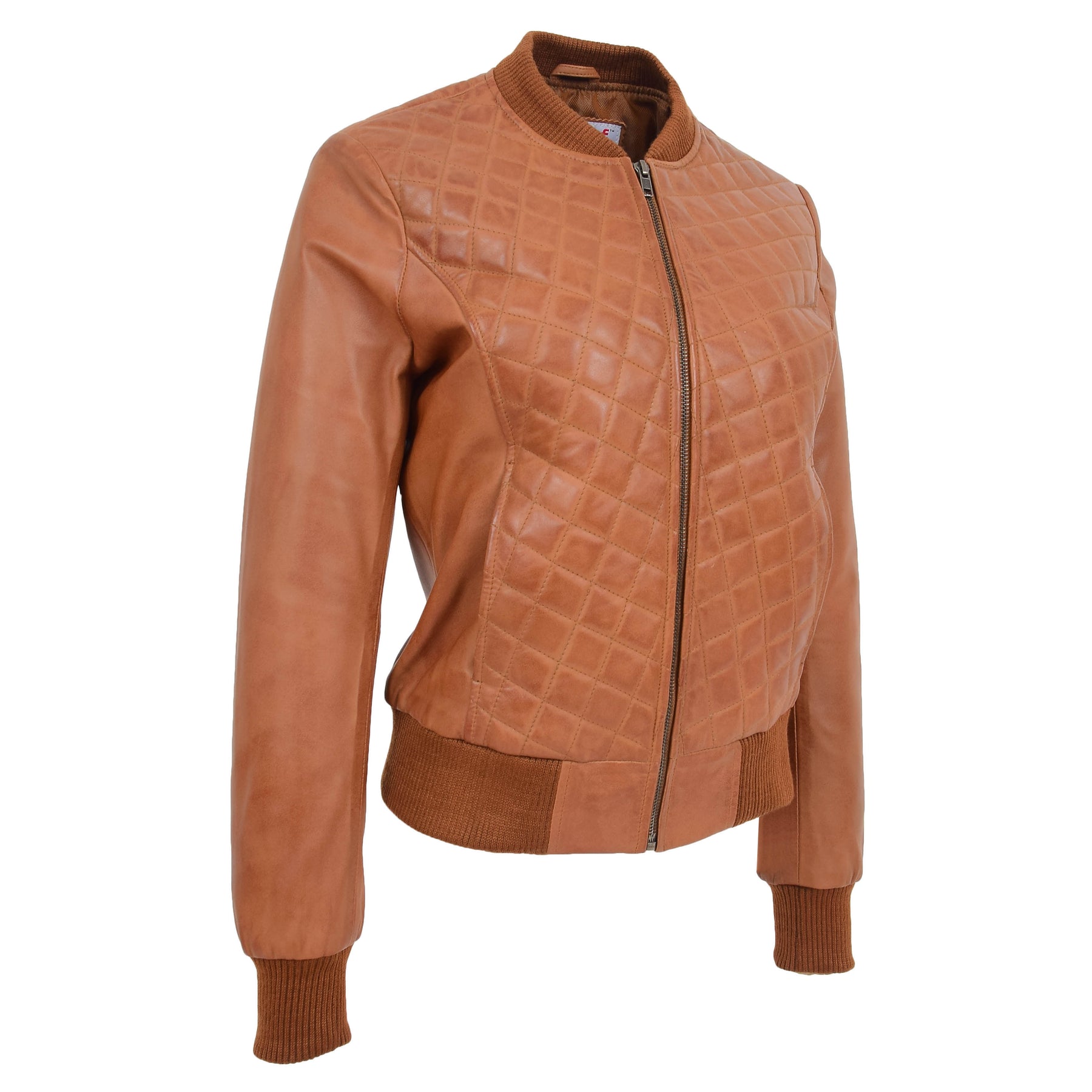 Womens Leather Varsity Quilted Bomber Jacket Sally Tan