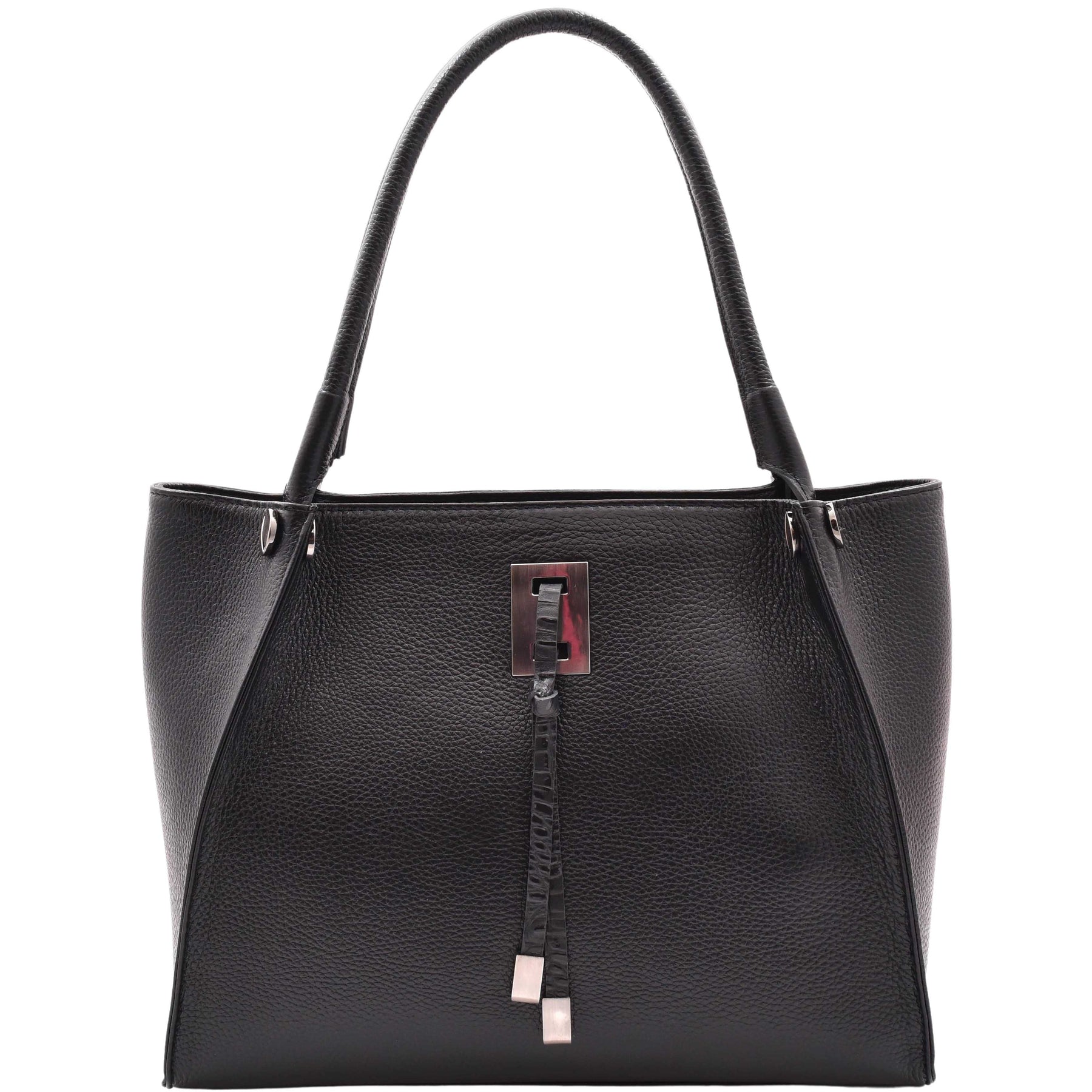 Crafted from the finest grained cowhide leather, this luxurious bag is a testament to exceptional craftsmanship. Featuring shoulder handles and a secure zip fastening, this bag offers both functionality and elegance. The outside boasts a convenient zip pocket, allowing you to keep your essentials within easy reach. A delicate tassel on the front adds a touch of sophistication, making it a true statement piece. Step inside and discover the refined interior of this bag. Complete with an inside zip compartment, open compartments on both sides, and additional pockets for your mobiles and accessories, it ensures utmost organization and accessibility.