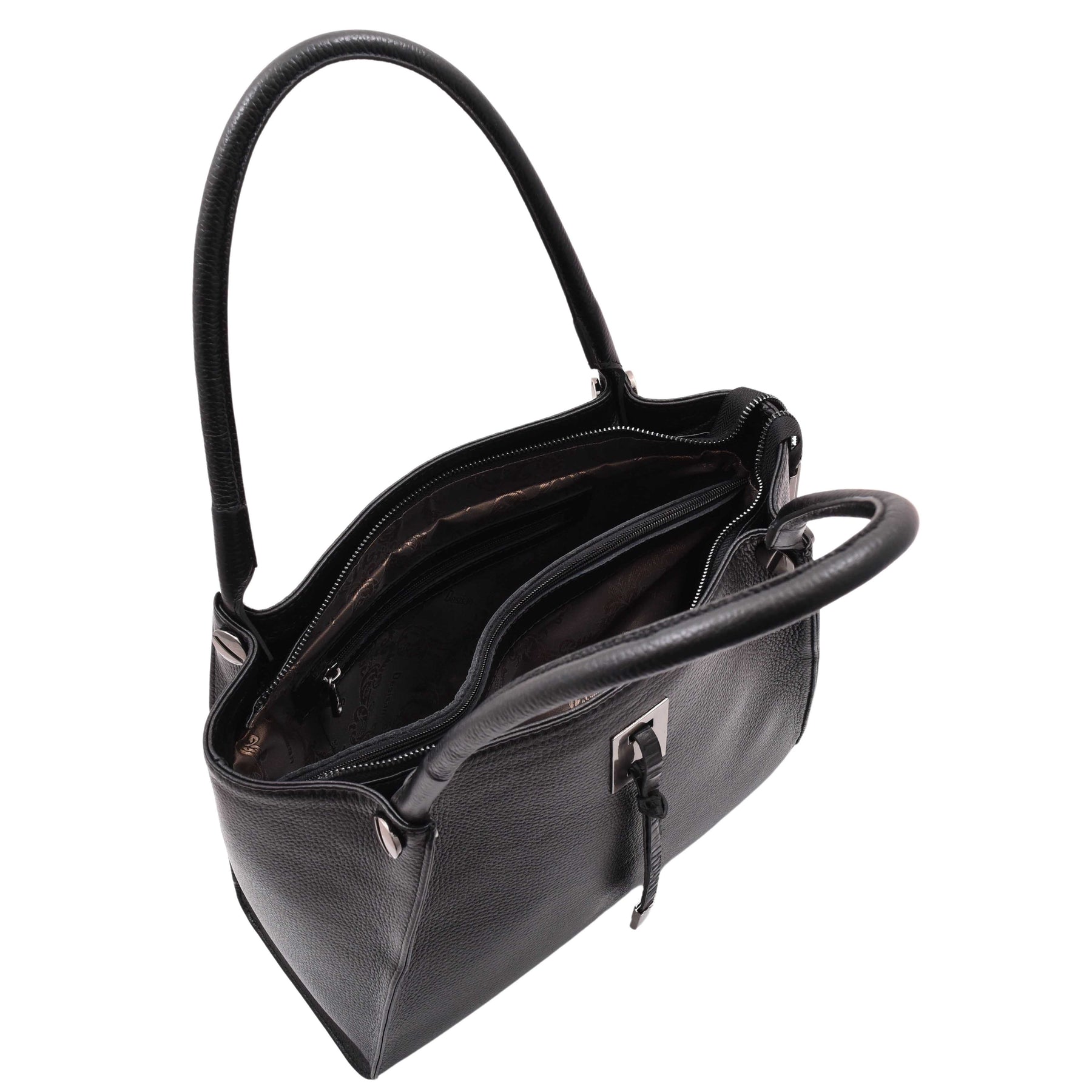Womens Multi Pockets Grained Leather Shoulder Bag Large Size Grace Black 1