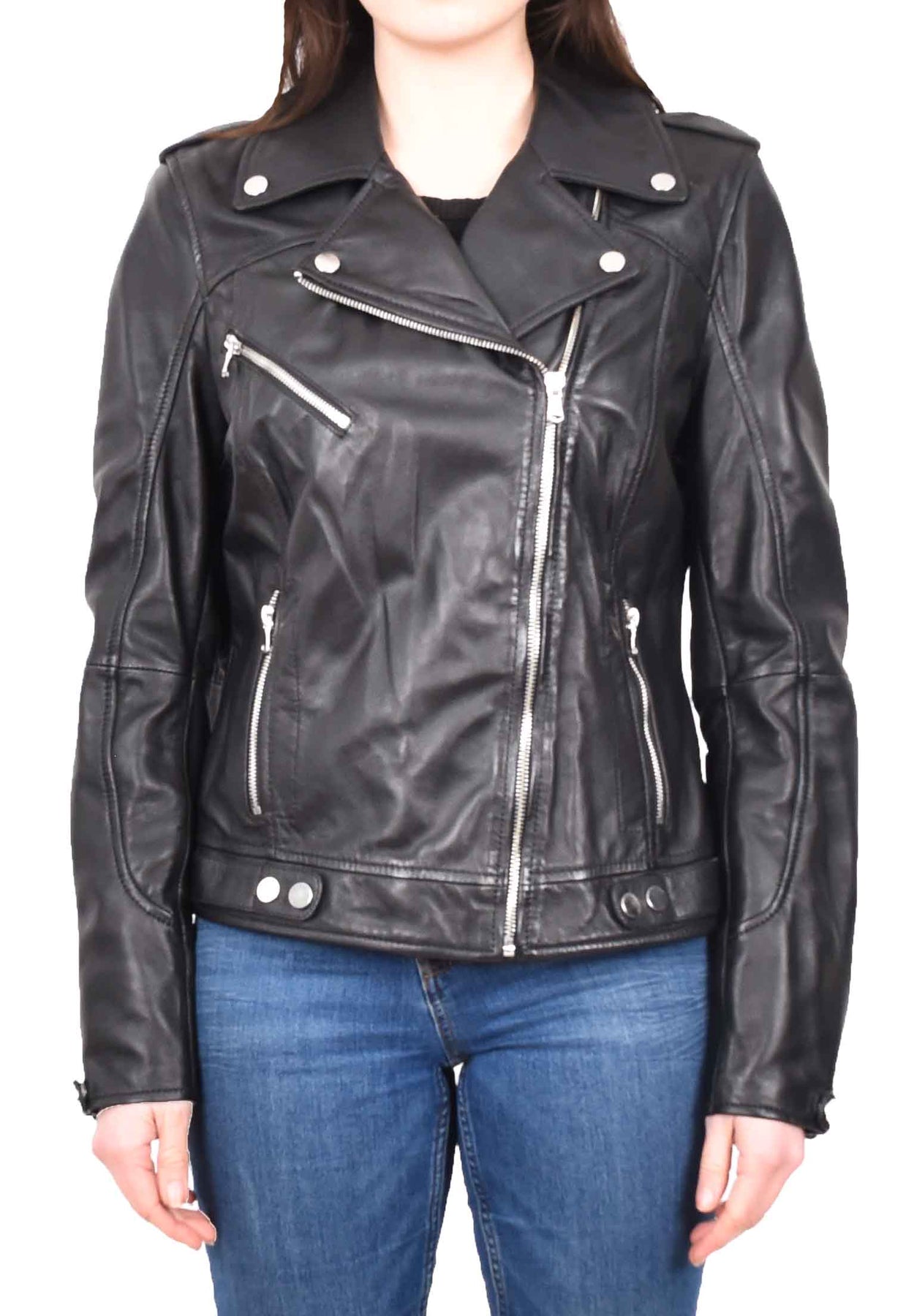 Womens Real Leather Biker Cross Zip Jacket Style Tiana Black Size 12