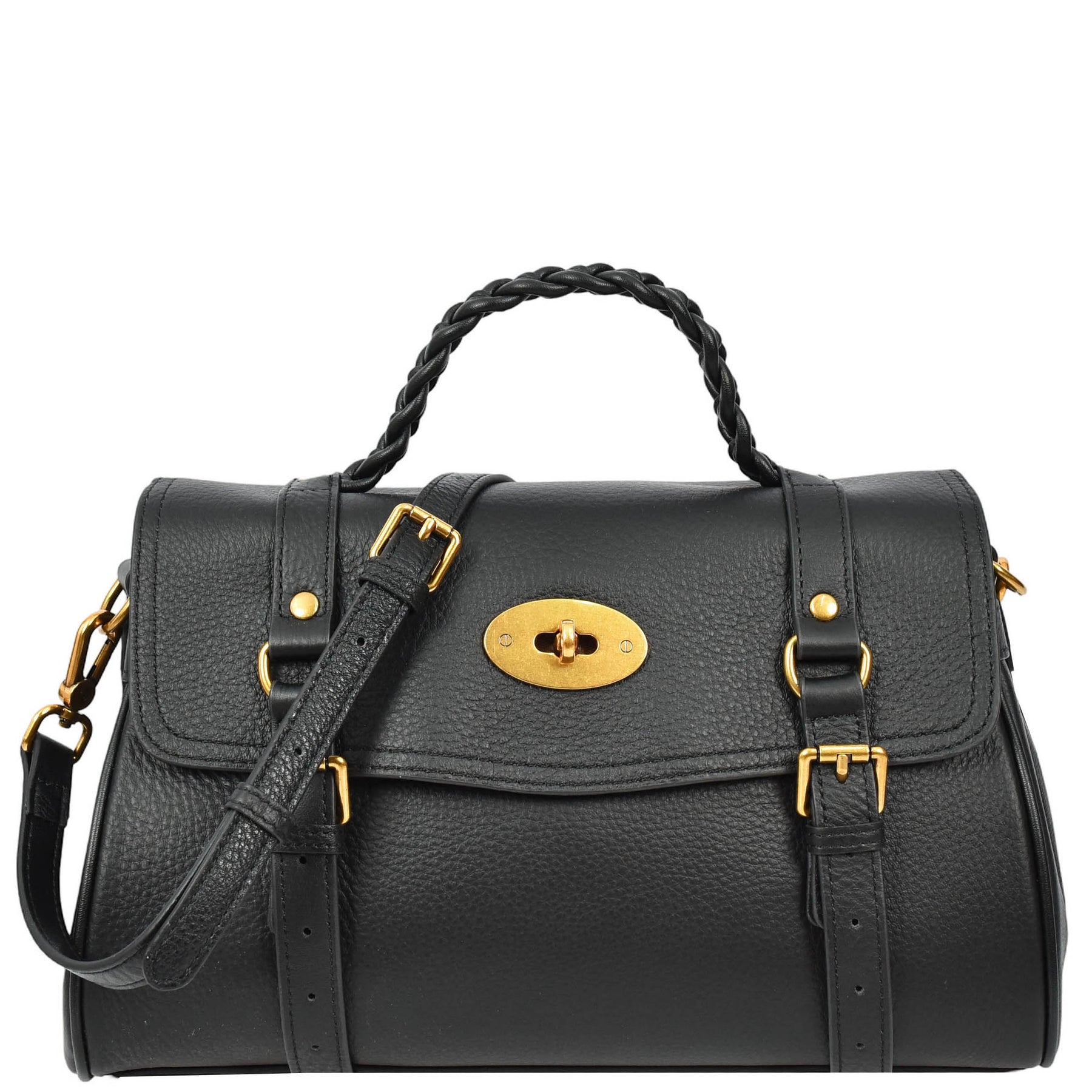 Womens Real Leather Handbag Classic Satchel Top-Handle Style Greta Black