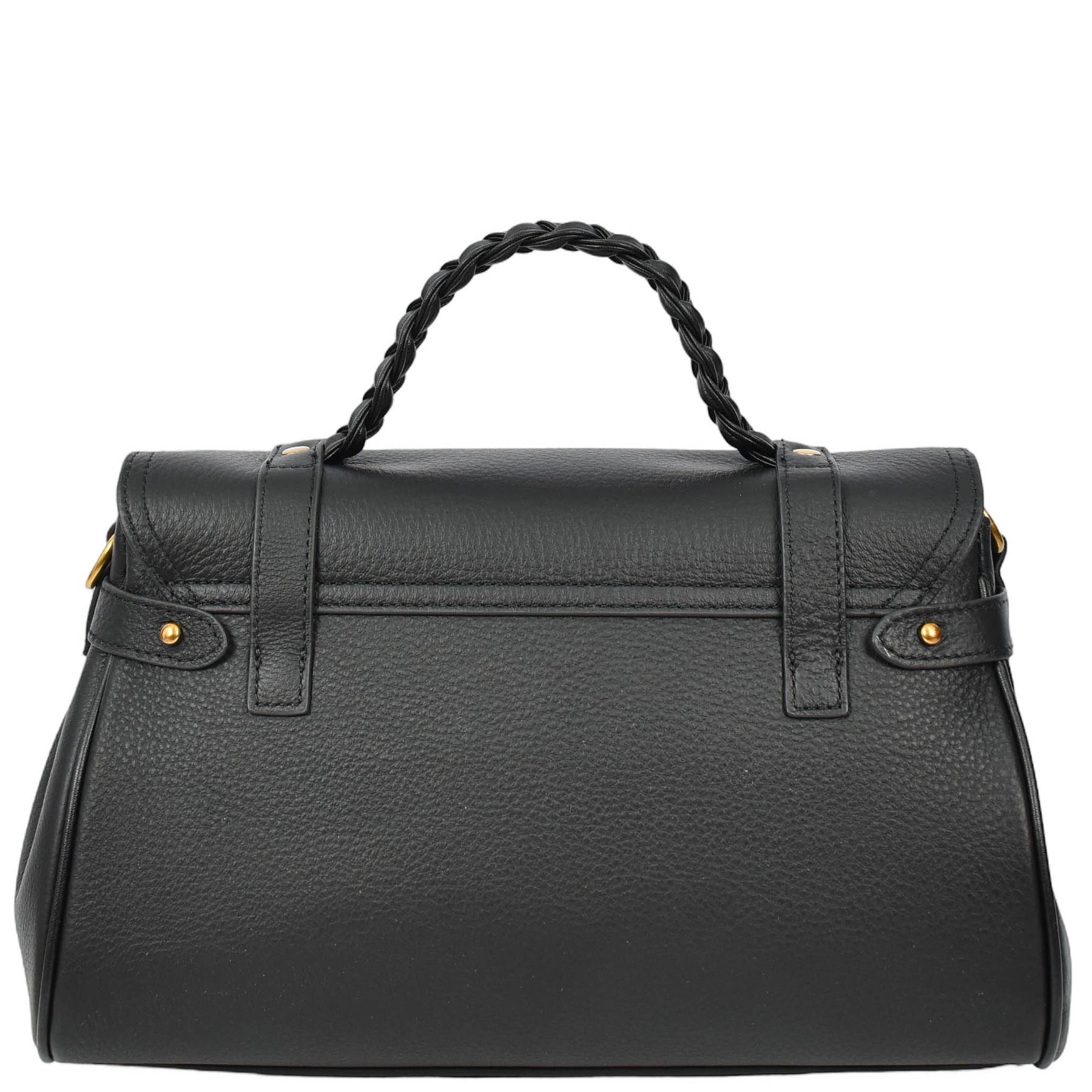 Womens Real Leather Handbag Classic Satchel Top-Handle Style Greta Black-3