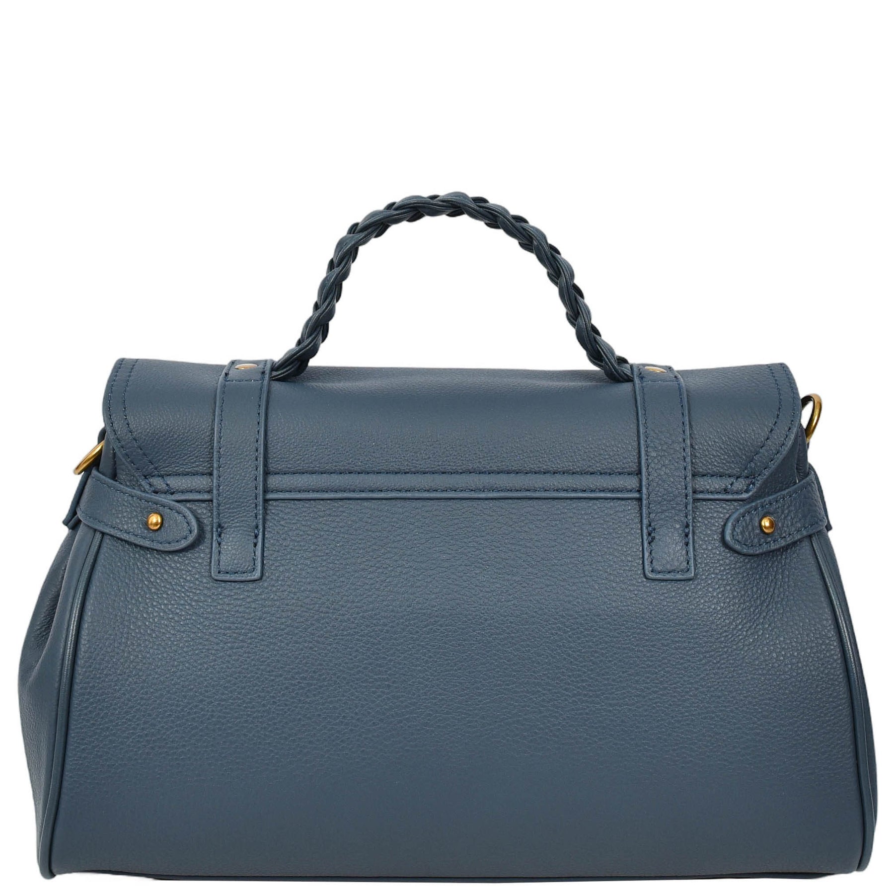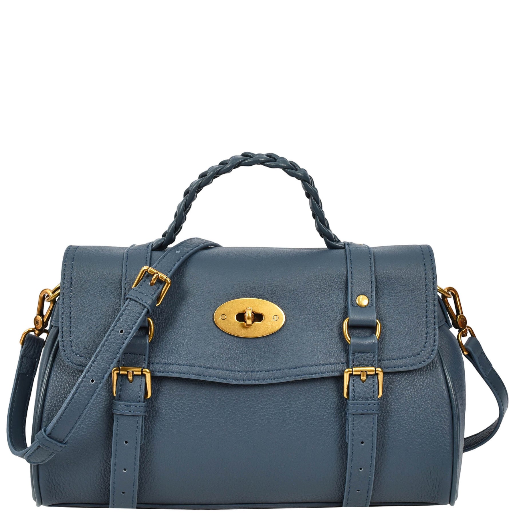 Womens Real Leather Handbag Classic Satchel Top-Handle Style Greta Blue