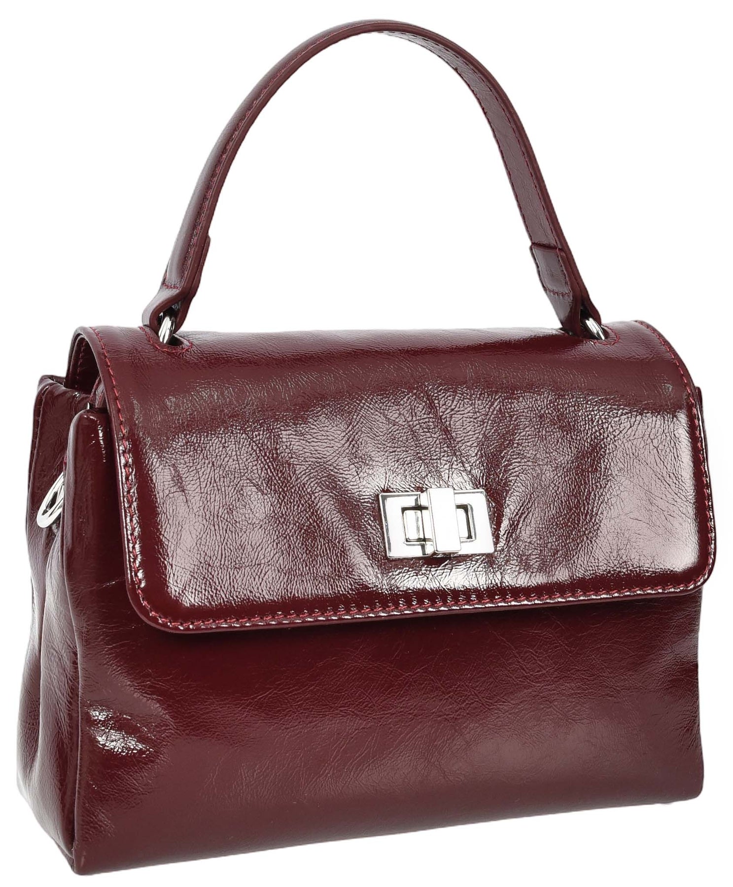 Womens Real Leather Handbag Mini Top-Handle Tote Style Aria Burgundy