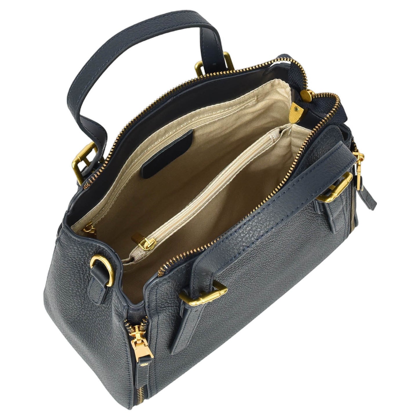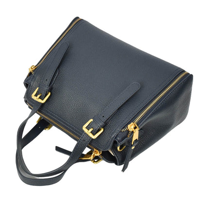 Womens Real Leather Handbag Small Size Top-Handle Style Juniper Blue