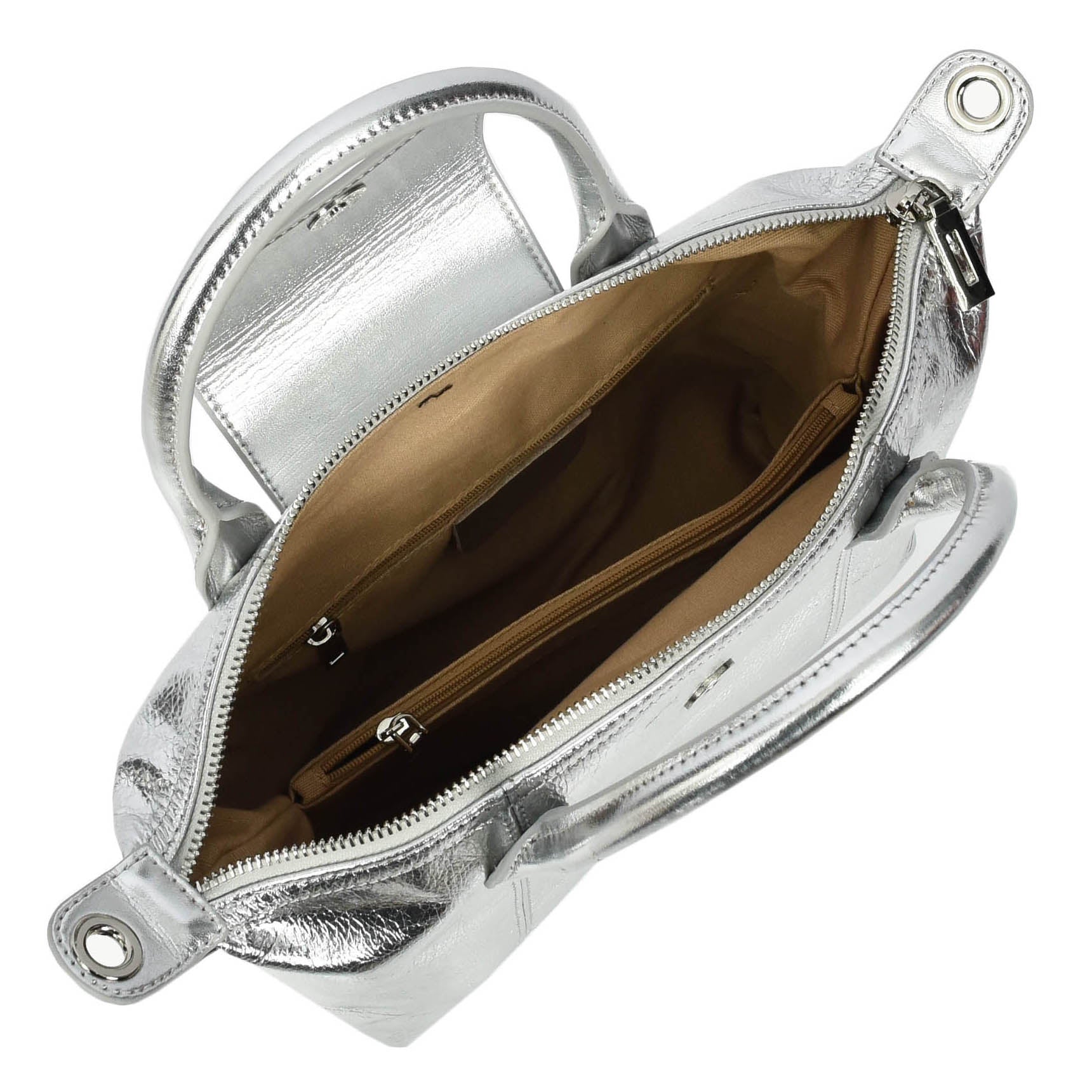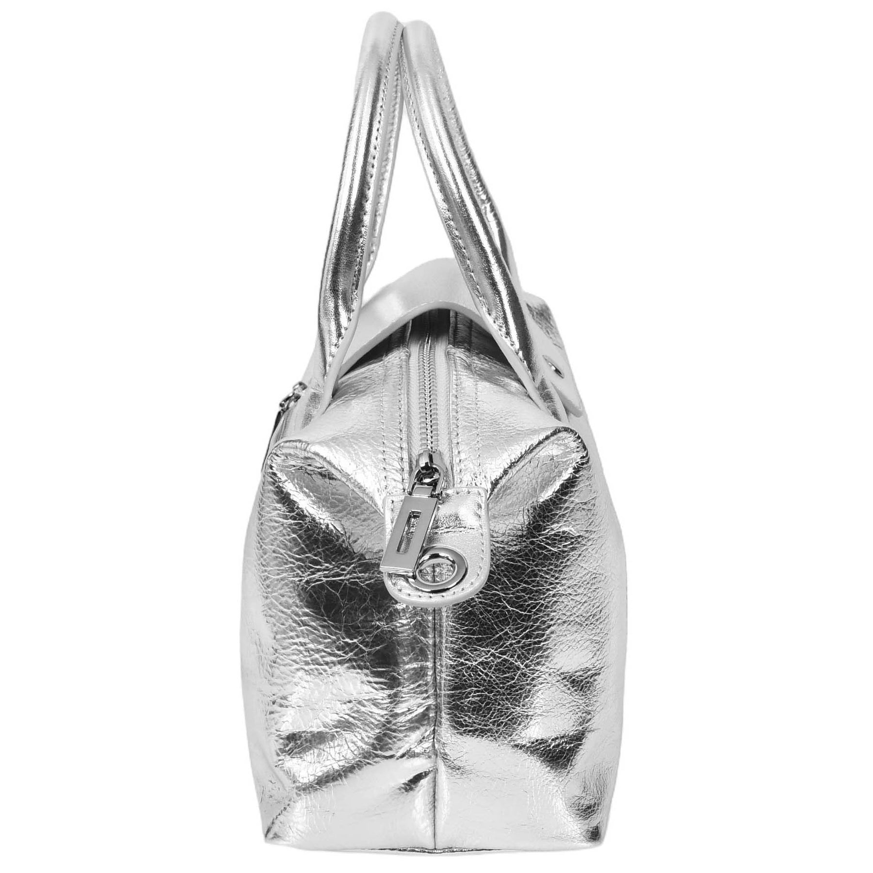 Womens Real Leather Handbag Small Top-Handle Tote Style Quinn Silver