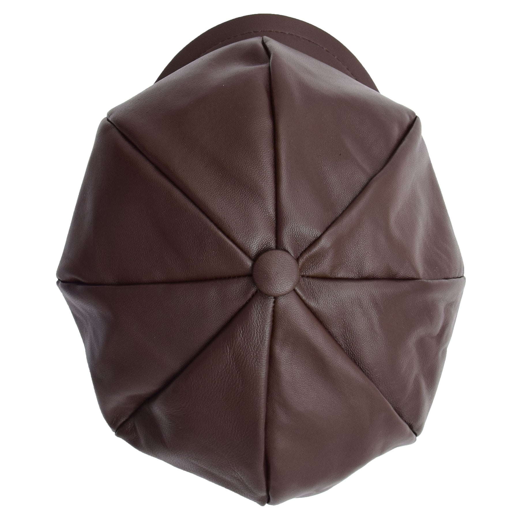 Womens Real Leather Peaked Beret Cap Ballon Brown